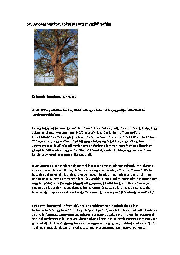 Tokaji Települési Értéktár Bizottság Értékei