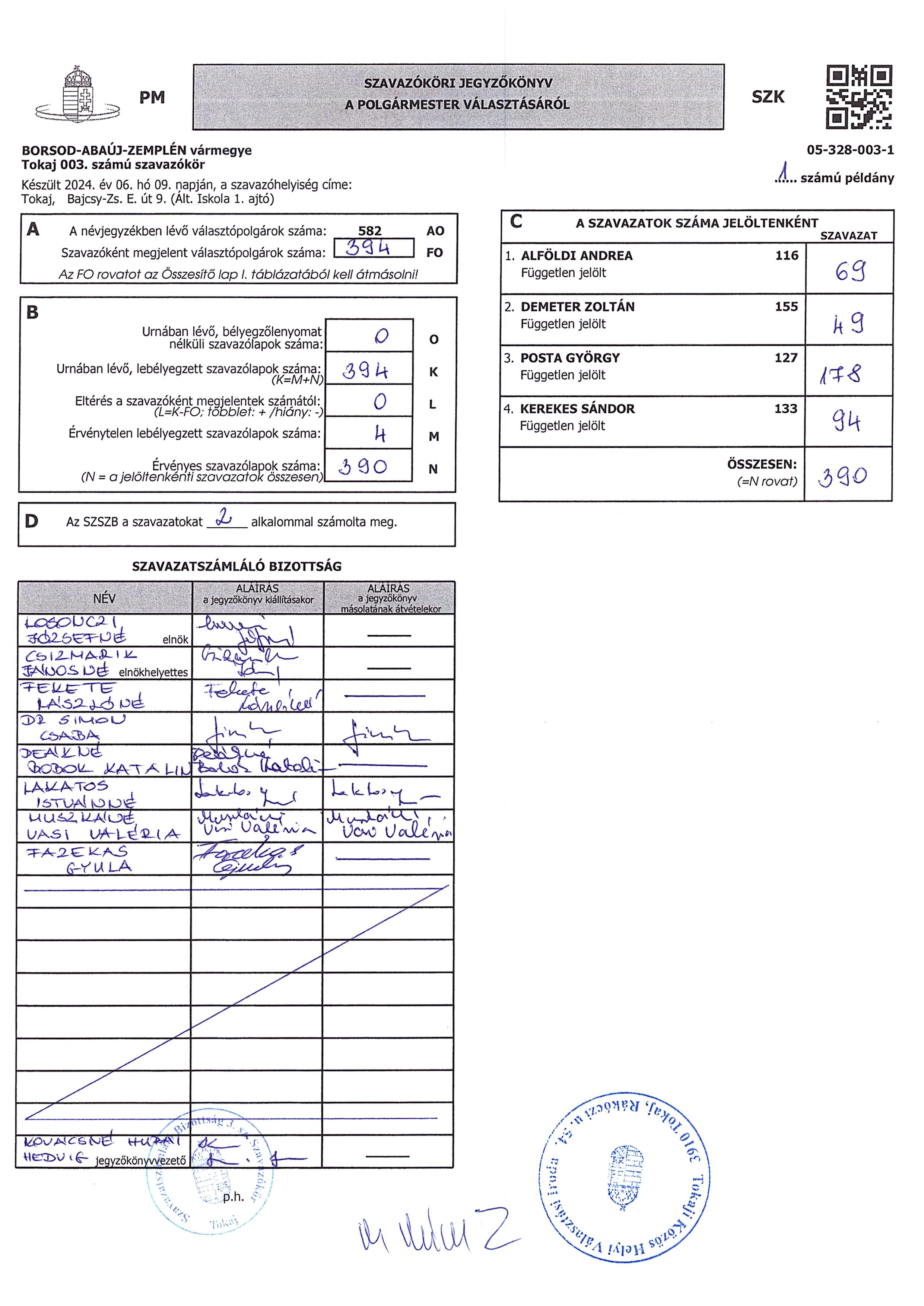 Szavazóköri jegyzőkönyv a polgármester válsztásáról 003